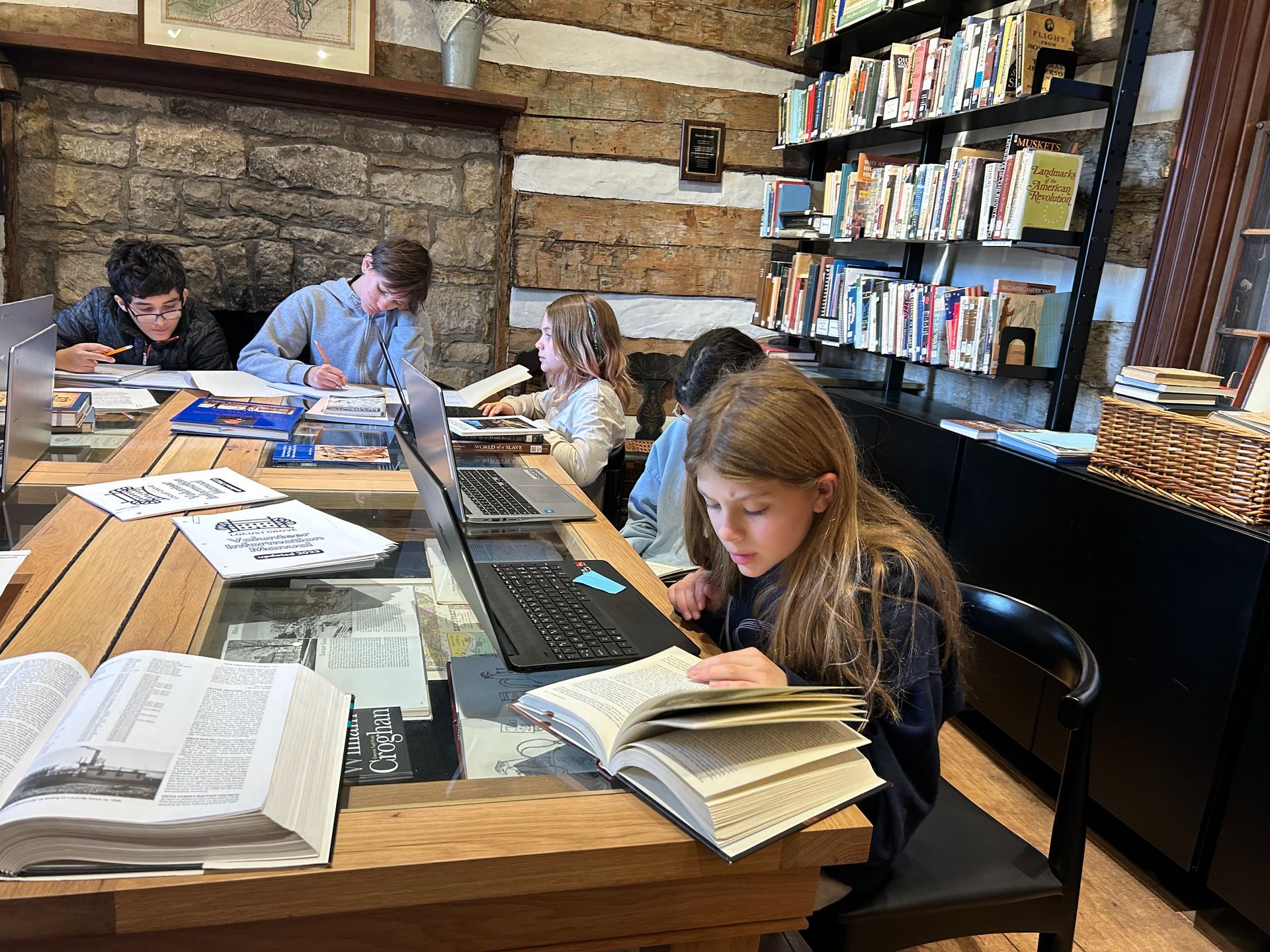 The Adolescent Montessori (Middle School) environment is designed for a community of learners. The classroom is equipped with group and individual tables and a variety of seating options. The space is designed to meet the physical, social, and academic needs of the students.